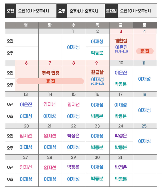 대표전화번호 안내평    일오전 9:30 ~ 오후 6:30